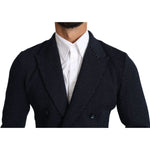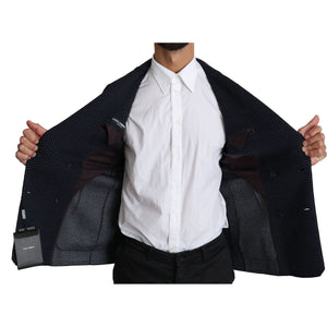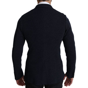 Dolce & Gabbana Dark Blue Dotted Double Breasted Coat Blazer