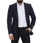 Dolce & Gabbana Dark Blue Stripe Wool Single Breasted Blazer