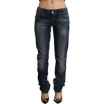 Acht Dark Blue Washed Cotton Skinny Denim Low Waist Jeans