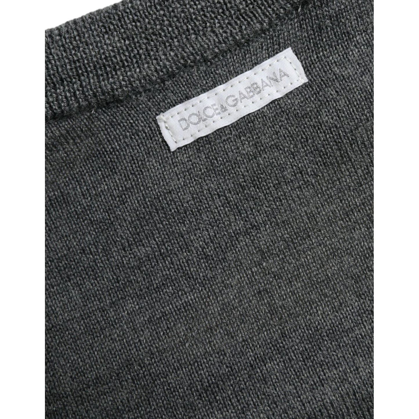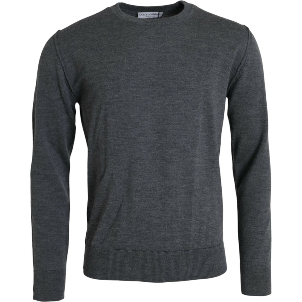Dolce & Gabbana Dark Gray Wool Crew Neck Pullover Sweater
