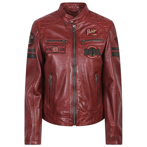The Walkora jacket draws inspiration from vintage car and motorcycle racing, with a very racing design. Made of vegetable tanned lambskin, it features numerous brushed areas. Walkora leather moto jacket