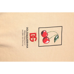 Dolce & Gabbana Beige Cherry Print Crew Neck Pullover Sweater