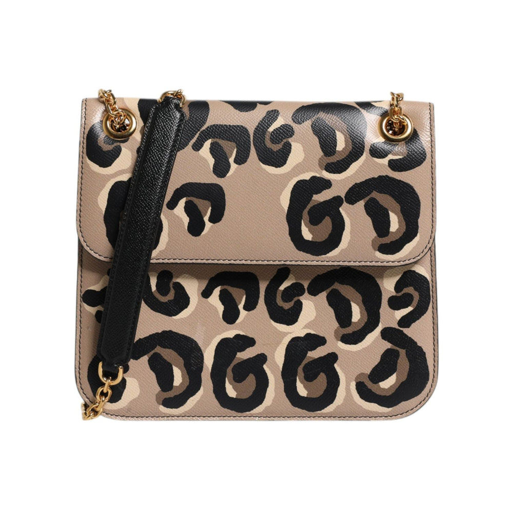 • Dolce & Gabbana Beige DG Leopard Pattern Leather Crossbody Bag