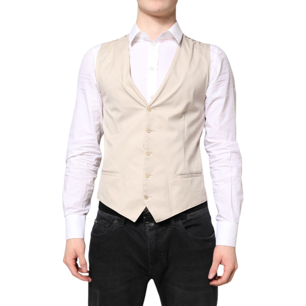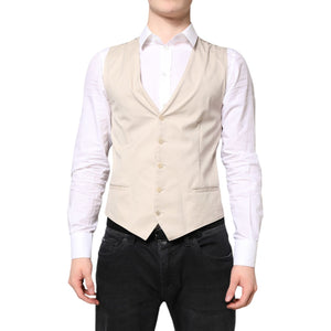Dolce & Gabbana Beige Gray Dress Men Formal Waistcoat Vest