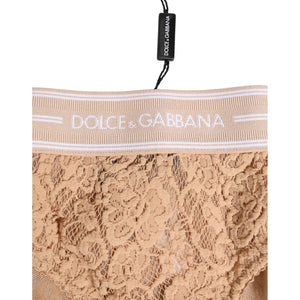 Dolce & Gabbana Beige Lace Brasiliano Briefs Logo Waistband Underwear