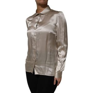 Dolce & Gabbana Beige Satin Silk Collared Long Sleeves Top
