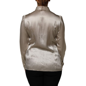 • Dolce & Gabbana Beige Satin Silk Collared Long Sleeves Top