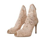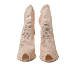 Dolce & Gabbana Beige Stretch Taormina Lace Boots Shoes