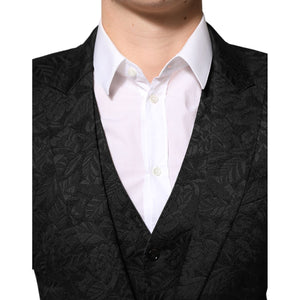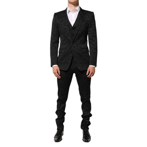 Dolce & Gabbana Black 3 Piece Brocade Jacquard Suit MARTINI