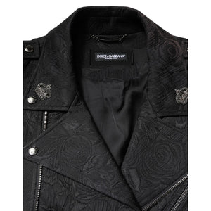 Dolce & Gabbana Black Brocade Cotton Full Zip Biker Jacket