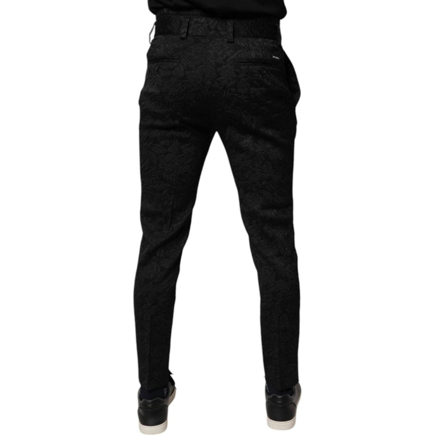 Dolce & Gabbana Black Brocade Polyester Skinny Dress Pants
