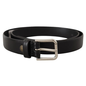 Dolce & Gabbana Black Calf Leather Silver Tone Logo Buckle Belt