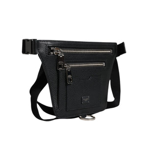Dolce & Gabbana Black Calfskin Logo Plaque Belt Waist Men Fanny Pack Bag