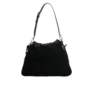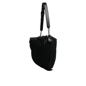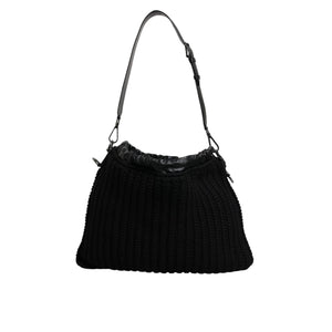 • Dolce & Gabbana Black Cashmere Knitted Leather Shoulder Bag