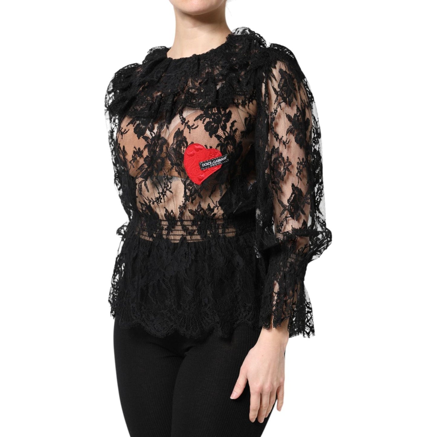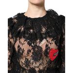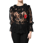 Dolce & Gabbana Black Cotton Floral Lace Women Blouse Top