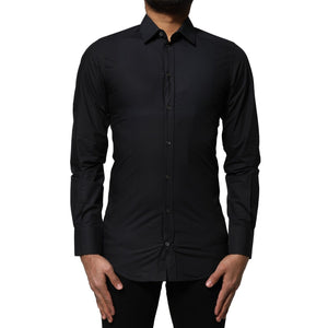 • Dolce & Gabbana Black Cotton GOLD Long Sleeves Dress Shirt