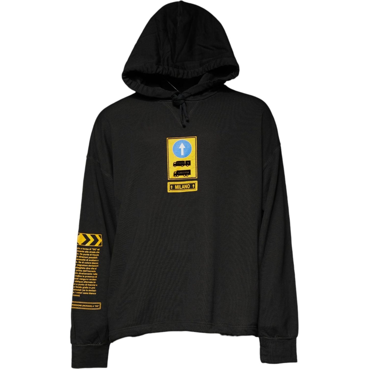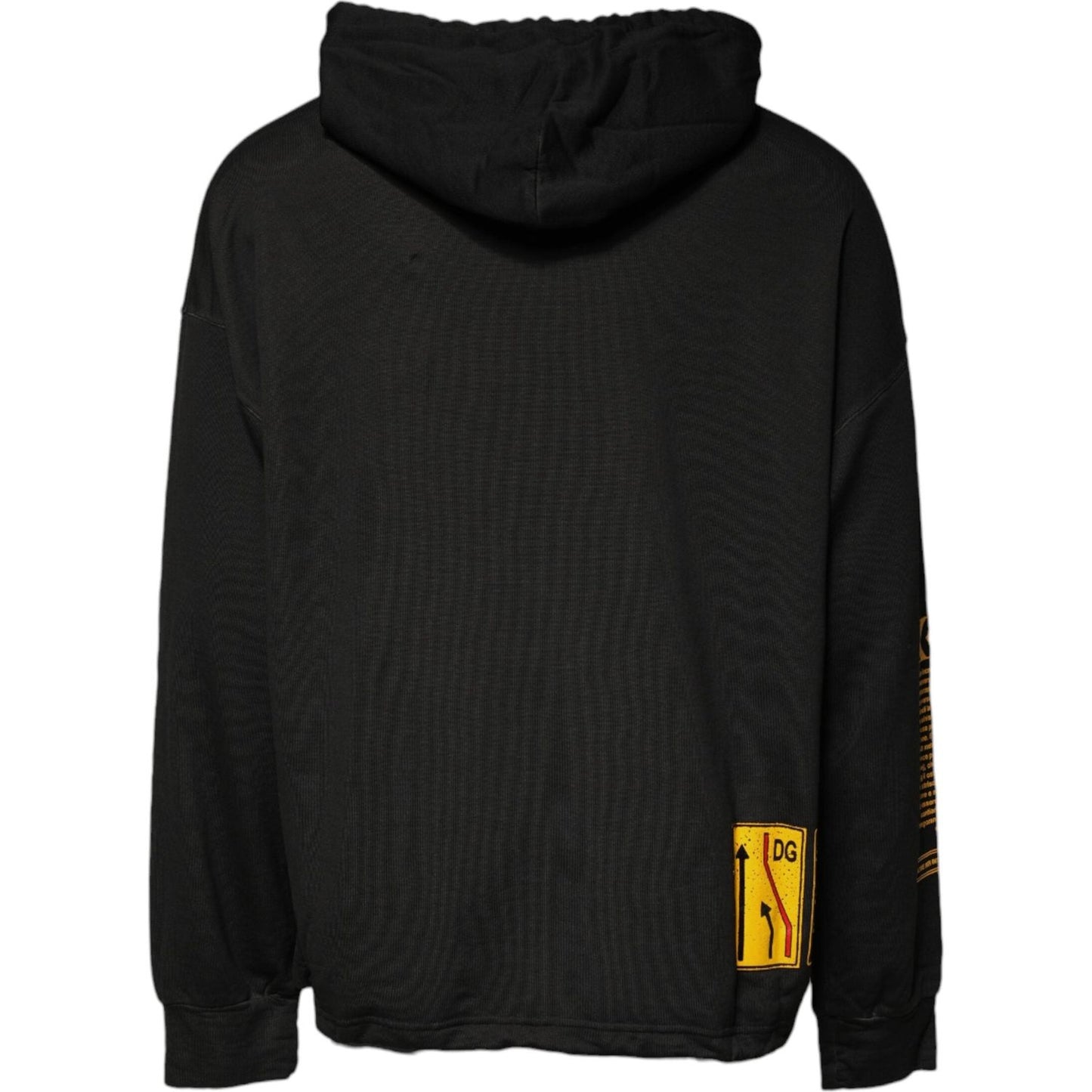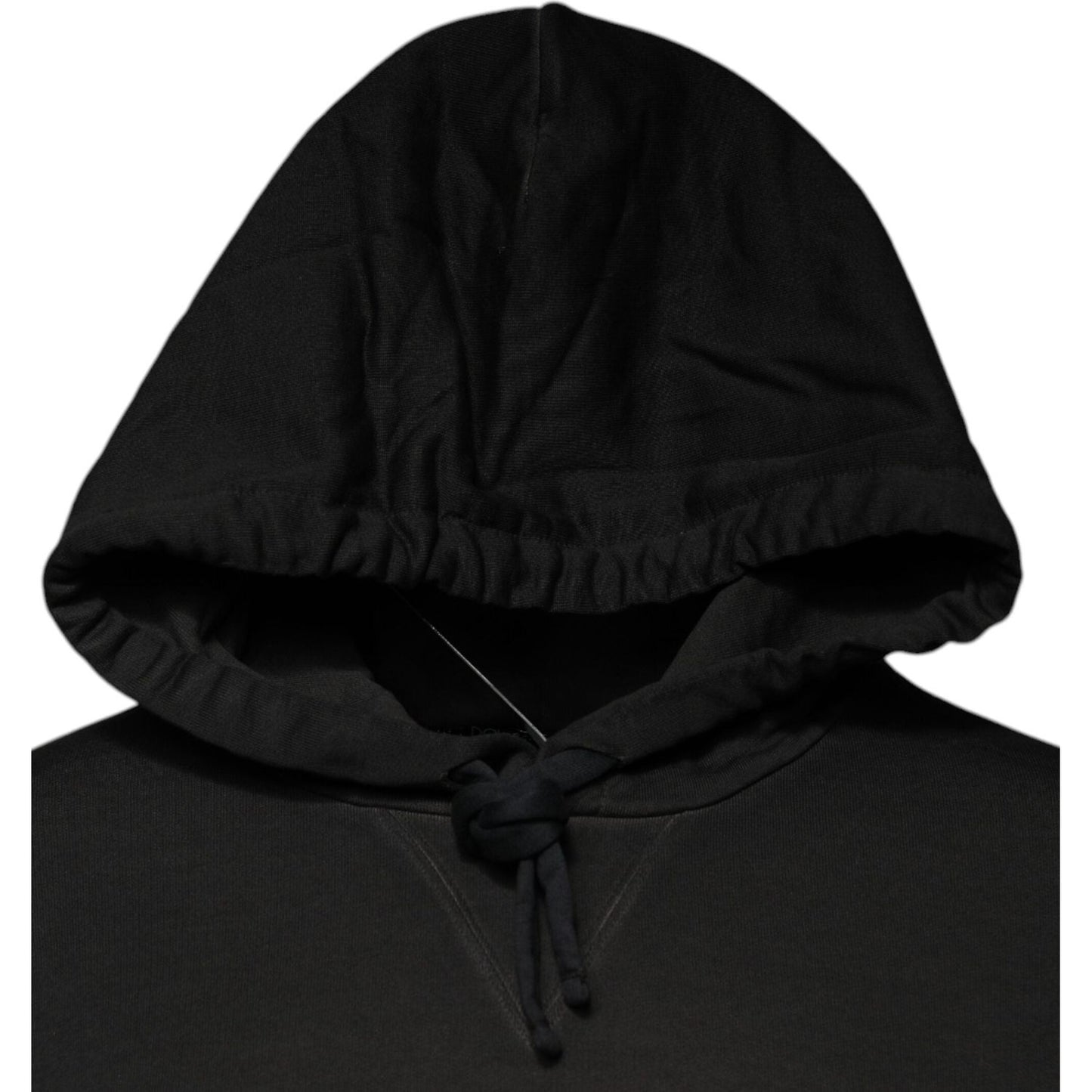 Dolce & Gabbana Black Cotton Hooded DG Shield Pullover Sweater