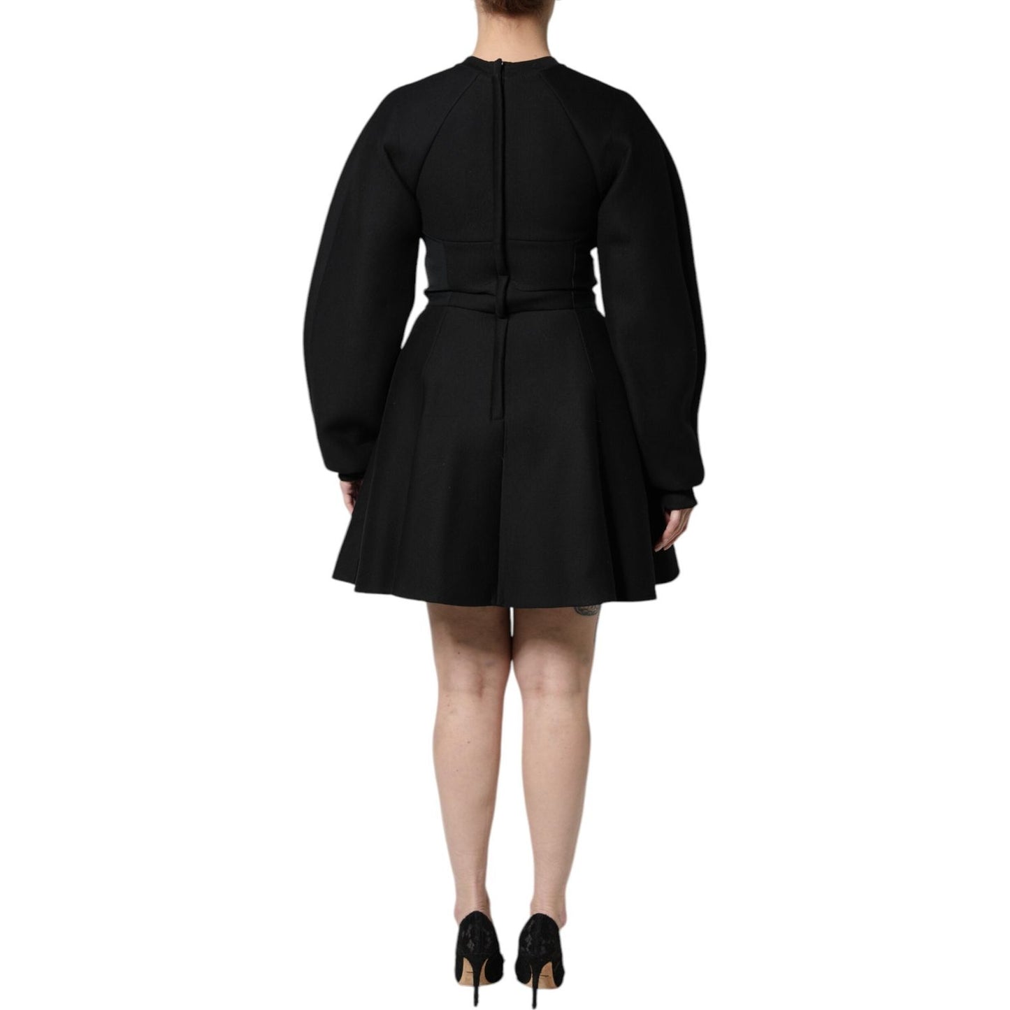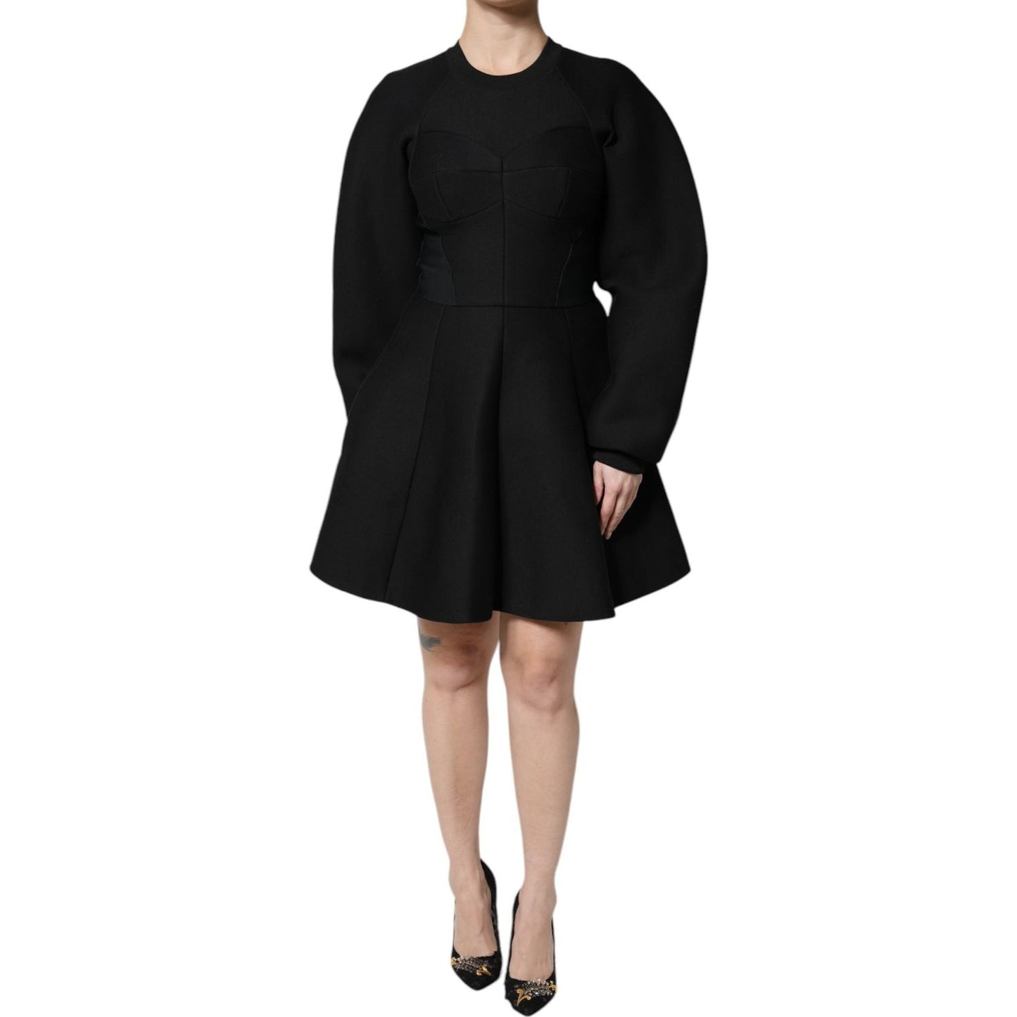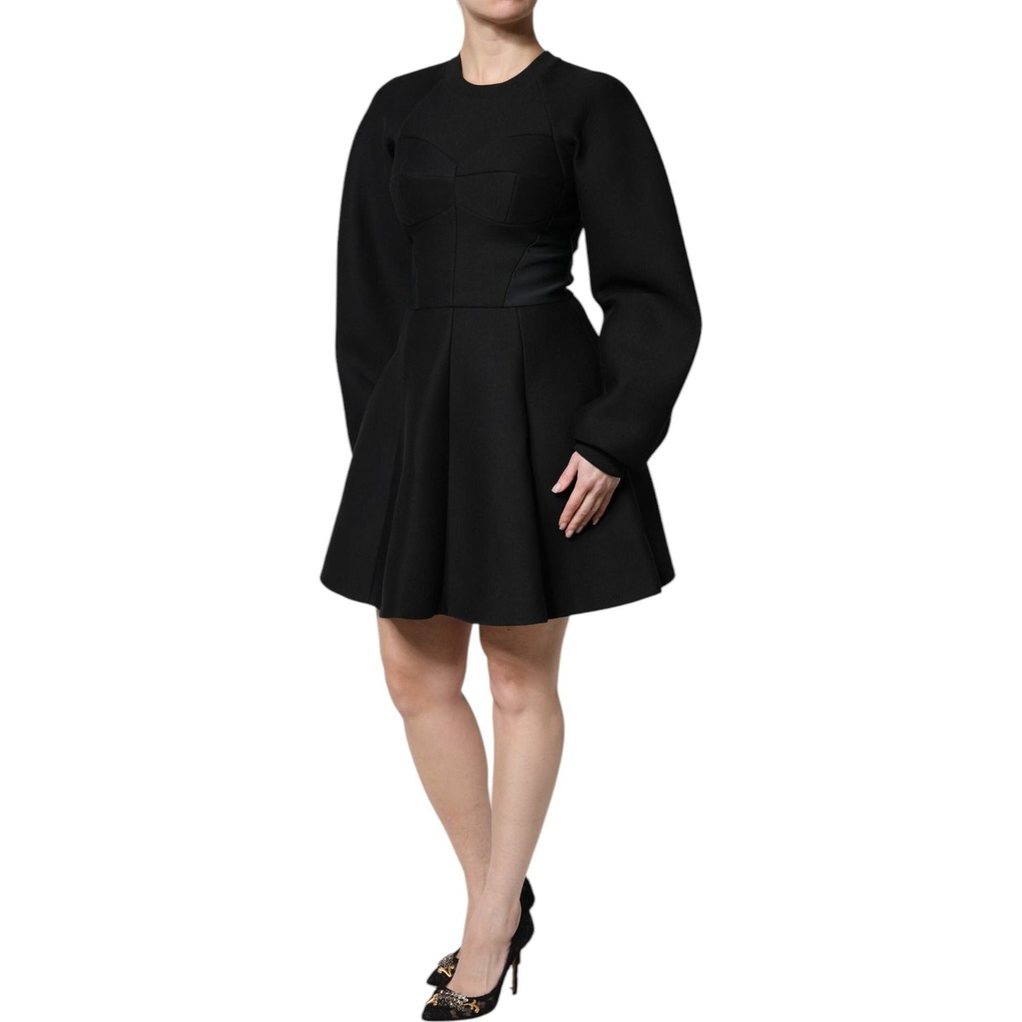 Dolce & Gabbana Black Cotton Long Sleeves A-line Mini Dress