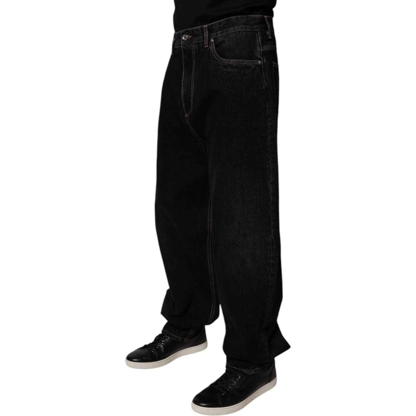 Dolce & Gabbana Black Cotton Mid Waist Wide Leg Denim Jeans