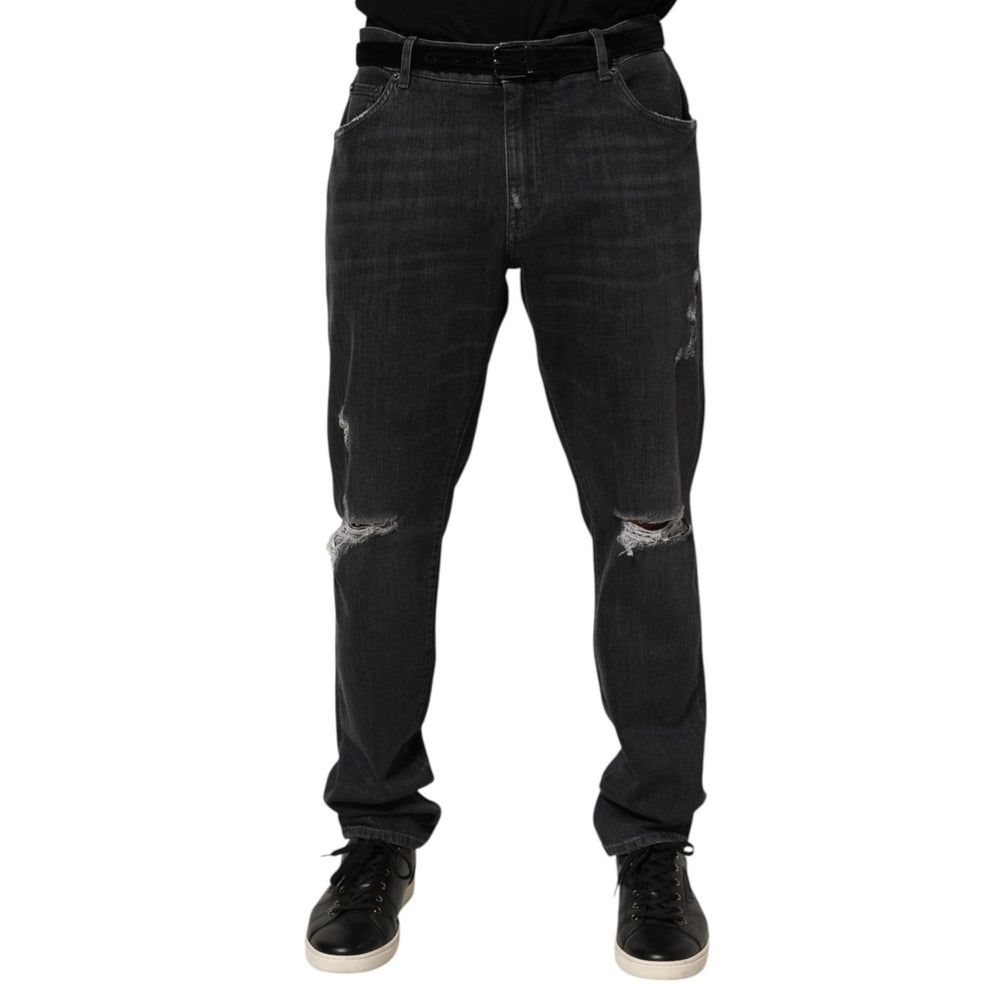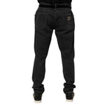 Dolce & Gabbana Black Cotton Slim Fit Distressed Ripped Logo Jeans