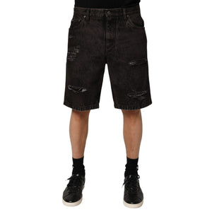 Dolce & Gabbana Black Cotton Tattered Denim Men Bermuda Short