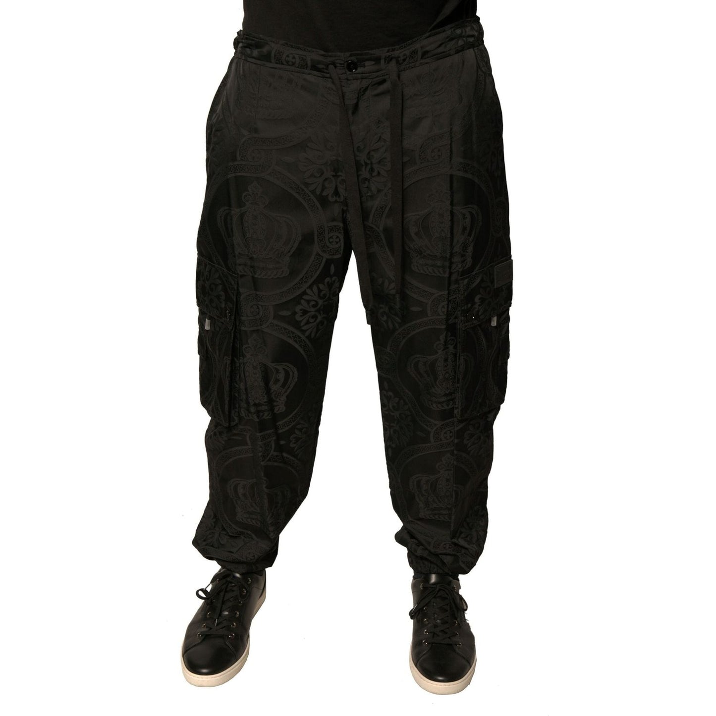 Dolce & Gabbana Black Crown Nylon Jogger Sweatpants Pants
