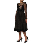 Dolce & Gabbana Black Crystal Heart Embellished A-line Dress