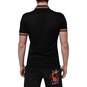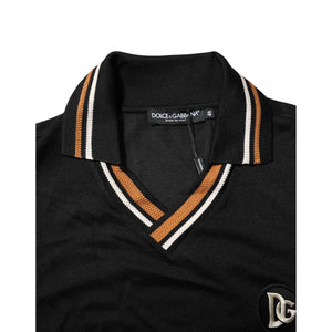 Dolce & Gabbana Black DG Silk V-neck Collared Men Polo T-shirt
