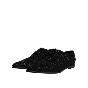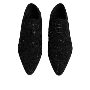 Dolce & Gabbana Black Embellished Suede Derby Formal Shoes