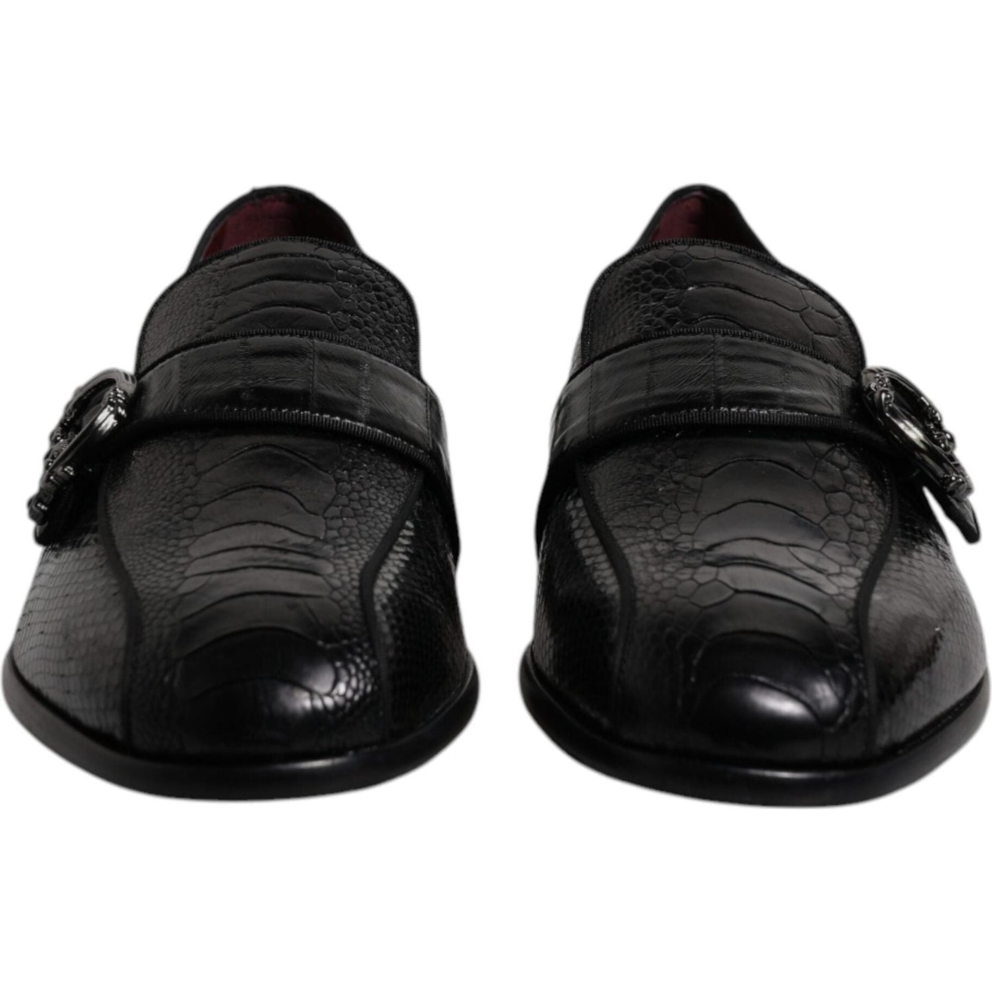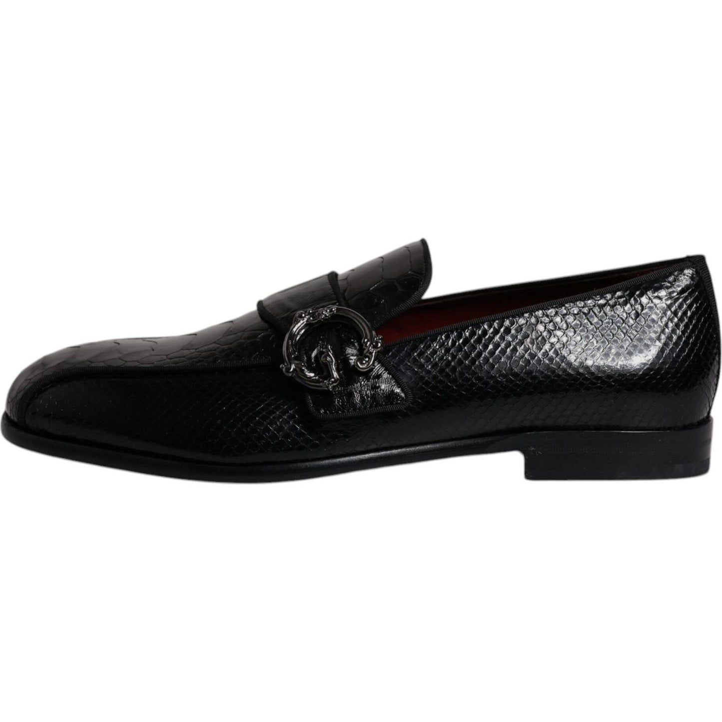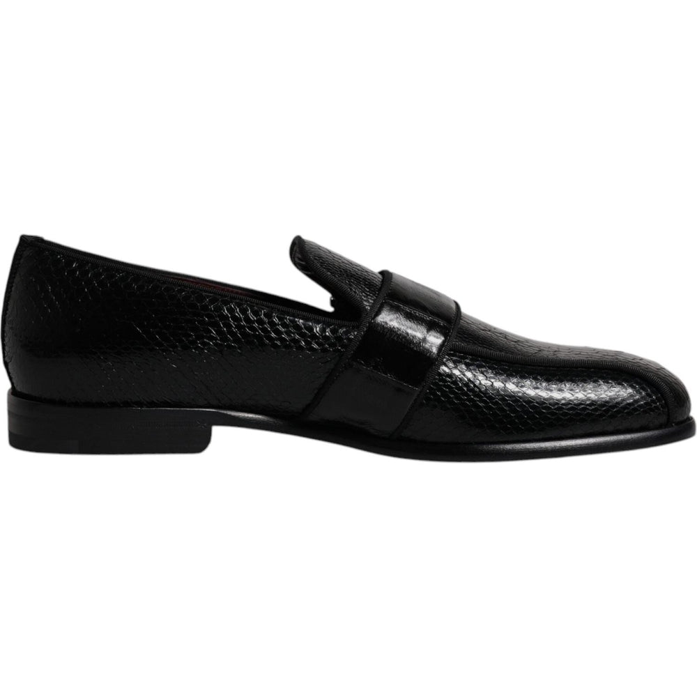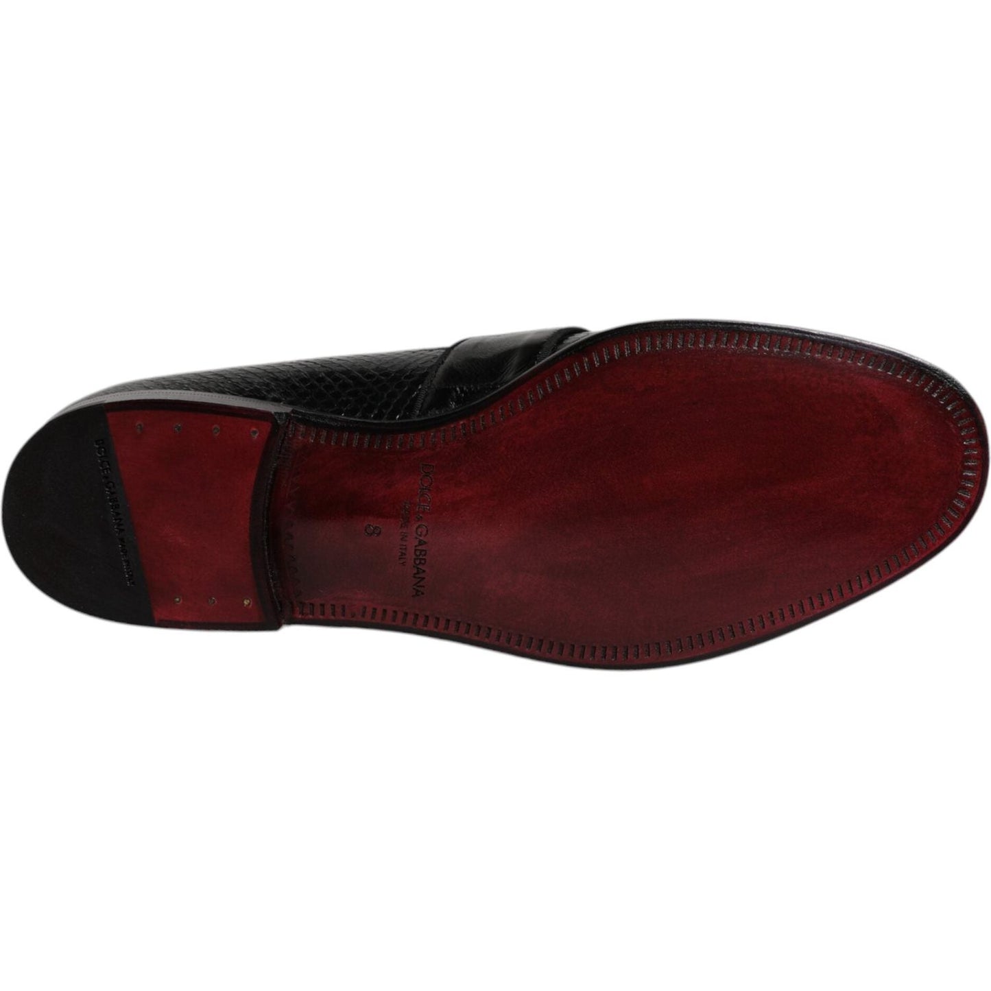 Dolce & Gabbana Black Exotic Leather DG Logo Loafers Formal Dress Shoes