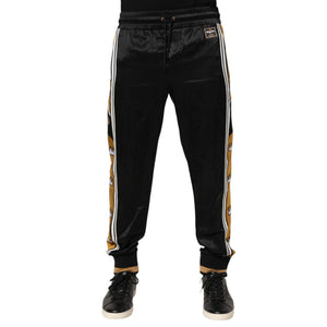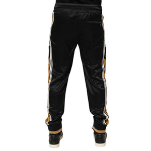 Dolce & Gabbana Black Gold Satin Crown Side Stripe Jogger Pants