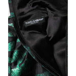 Dolce & Gabbana Black Green Metallic Jacquard Mini Long Dress