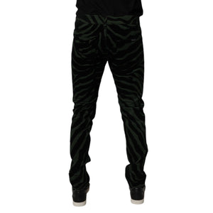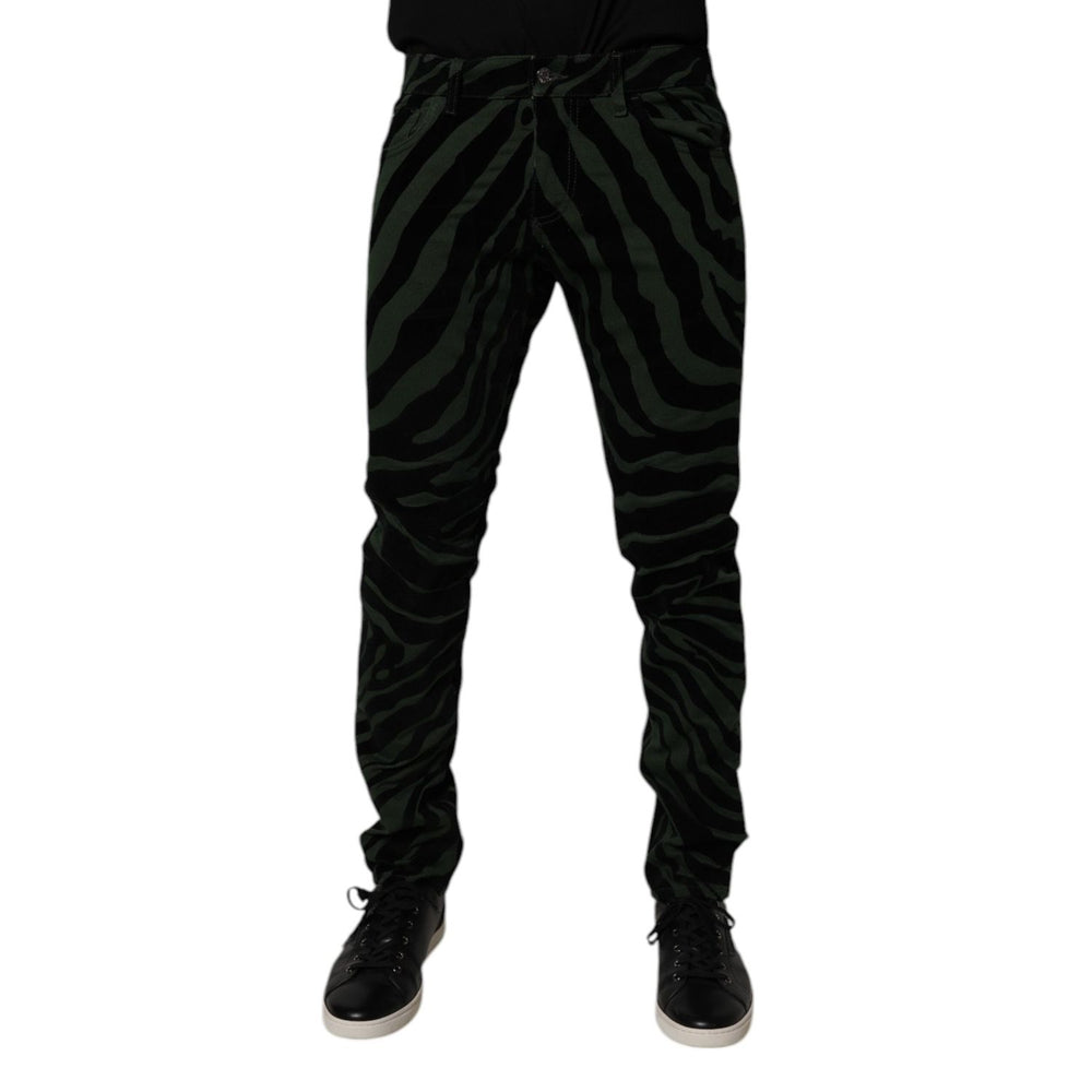 • Dolce & Gabbana Black Green Stripes Cotton Skinny Denim Jeans