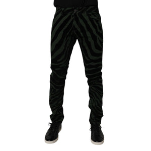 Dolce & Gabbana Black Green Stripes Cotton Skinny Denim Jeans