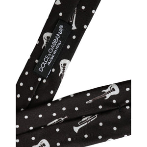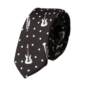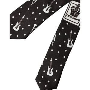 Dolce & Gabbana Black Guitar Print Silk Adjustable Tie