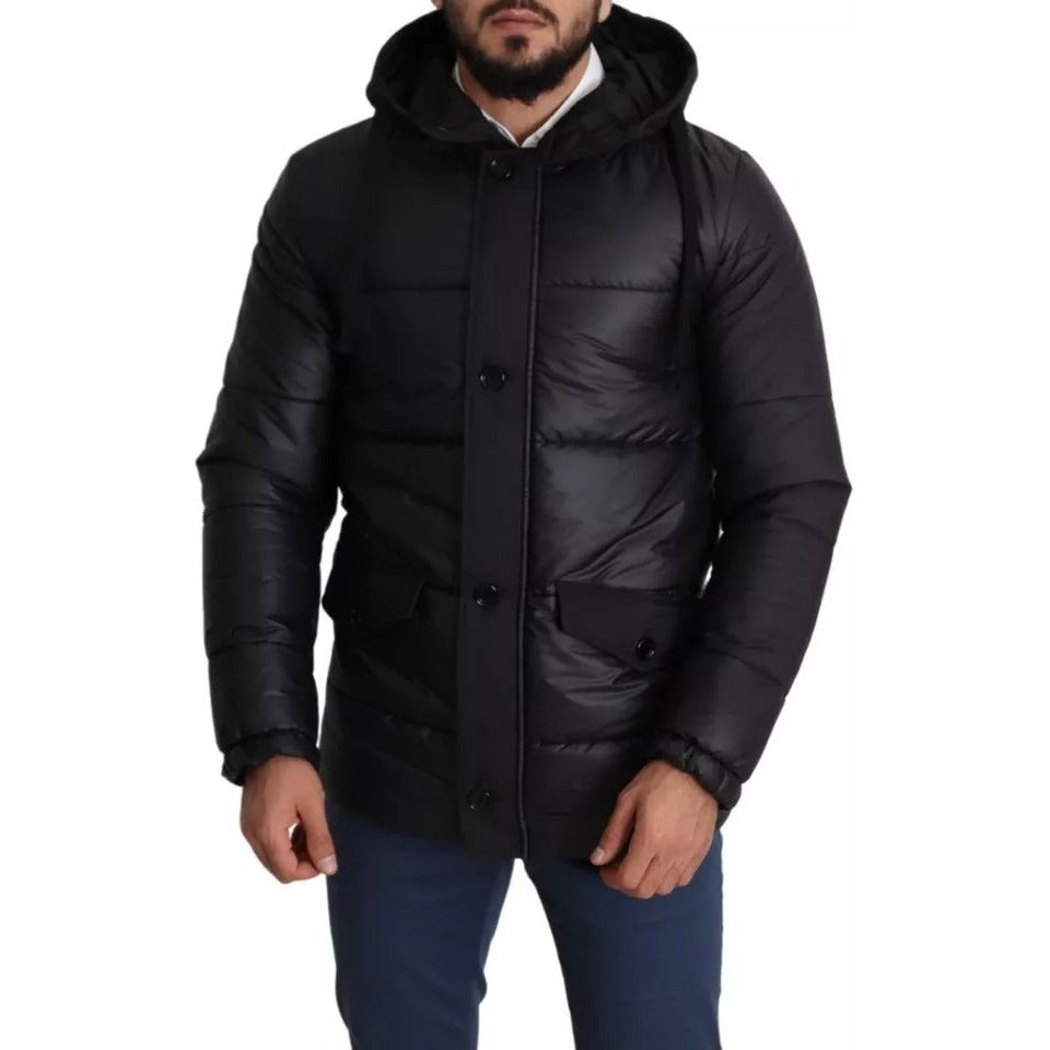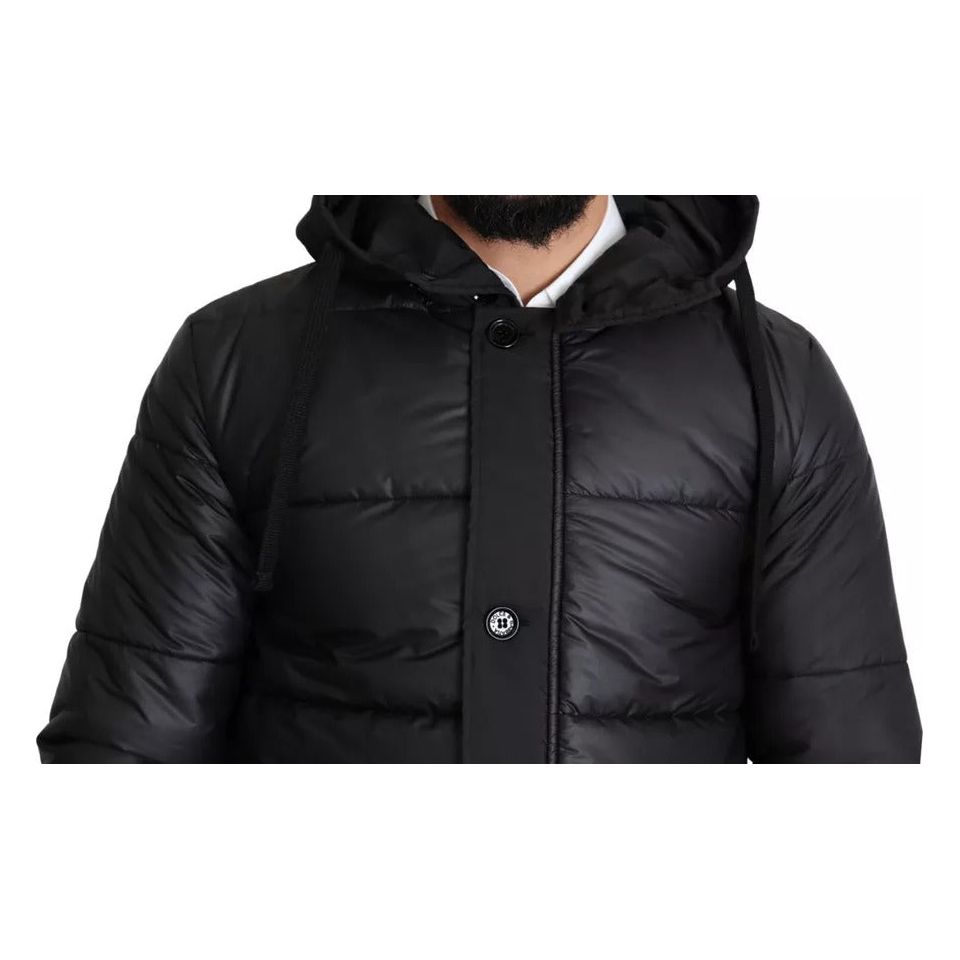 Dolce & Gabbana Black Hooded Polyester Men Coat Puffer Jacket