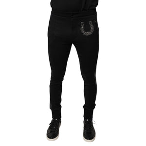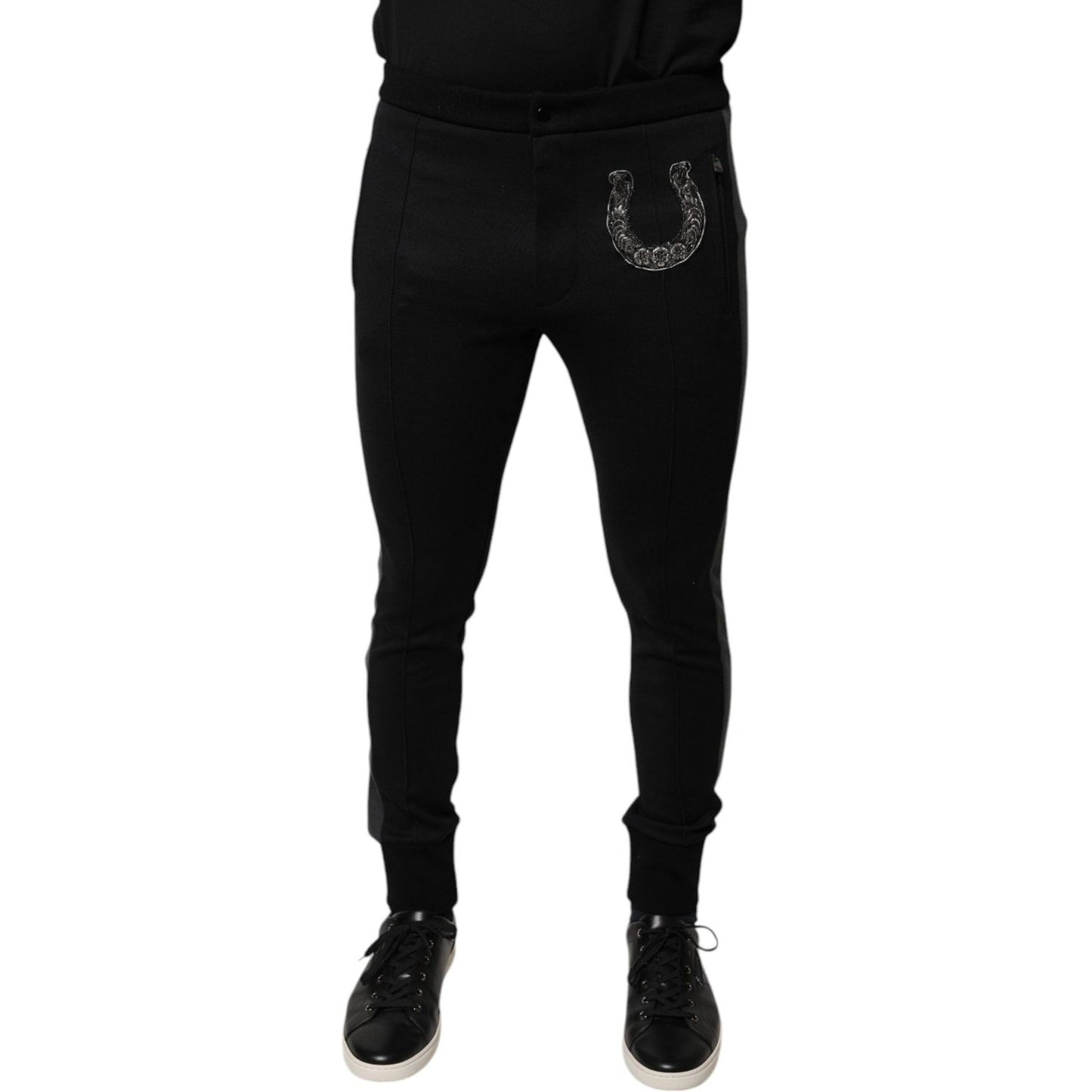 Dolce & Gabbana Black Horseshoe Embellished Wool Slim Fit Pants