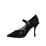 • Dolce & Gabbana Black Lace Crystals Mary Jane Pumps Shoes