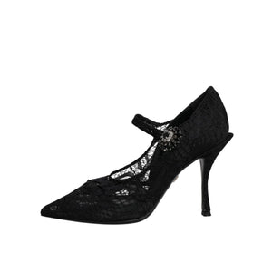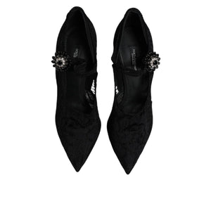 Dolce & Gabbana Black Lace Crystals Mary Jane Pumps Shoes