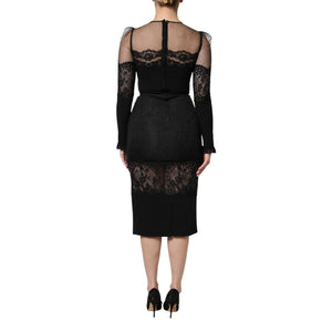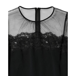 Dolce & Gabbana Black Lace Trim Nylon Tulle SheathMidi Dress