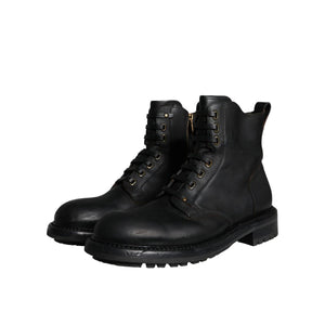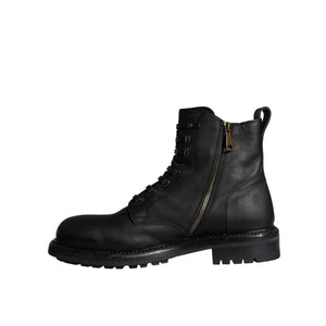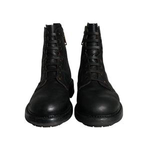 Dolce & Gabbana Black Lace Up Mid Calf Boots Men Shoes