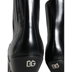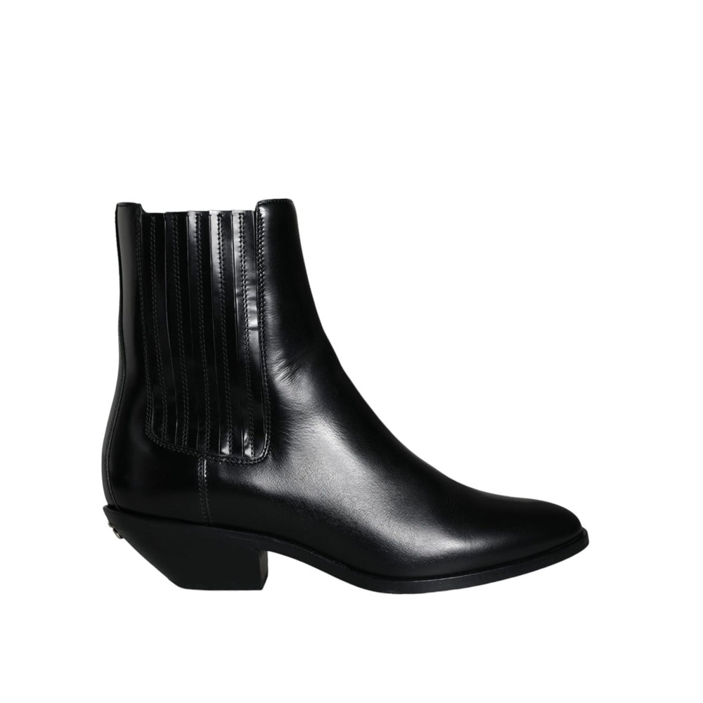 Dolce & Gabbana Black Leather Ankle Boots Booties Shoes