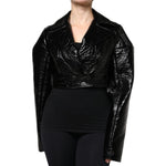 Dolce & Gabbana Black Leather Cropped Long Sleeve Coat Jacket