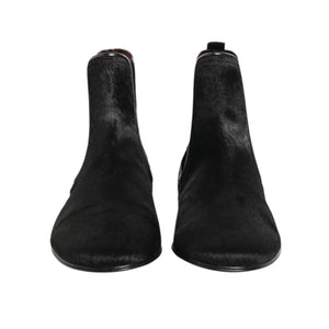 Dolce & Gabbana Black Leather Fur Men CHELSEA Boots Shoes