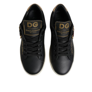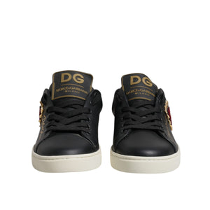 Dolce & Gabbana Black Leather Gold Red Heart Sneakers Shoes