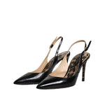 Dolce & Gabbana Black Leather High Heels Slingbacks Shoes