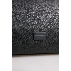 Dolce & Gabbana Black Leather Logo Plaque Shoulder Crossbody Bag