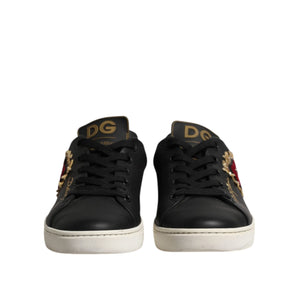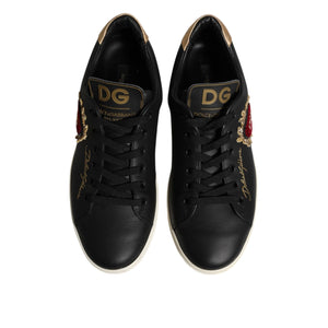 Dolce & Gabbana Black Leather Sacred Heart Sneakers Shoes