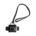 Dolce & Gabbana Black Leather Strap Gold Metal Logo Plaque Airpods Case