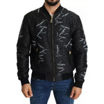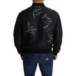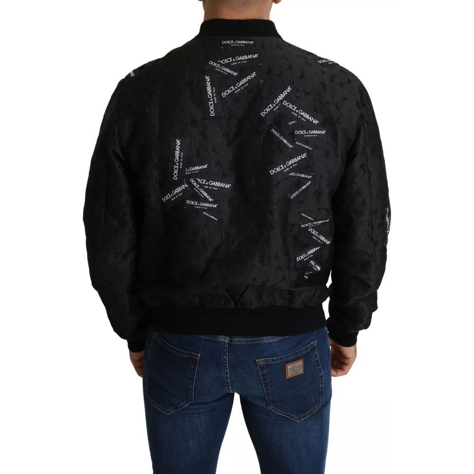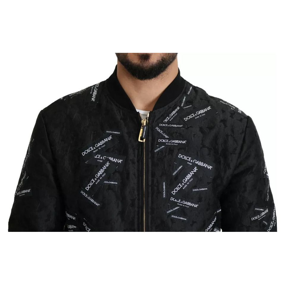 Dolce & Gabbana Black Logo Patch Brocade Bomber Full Zip Jacket